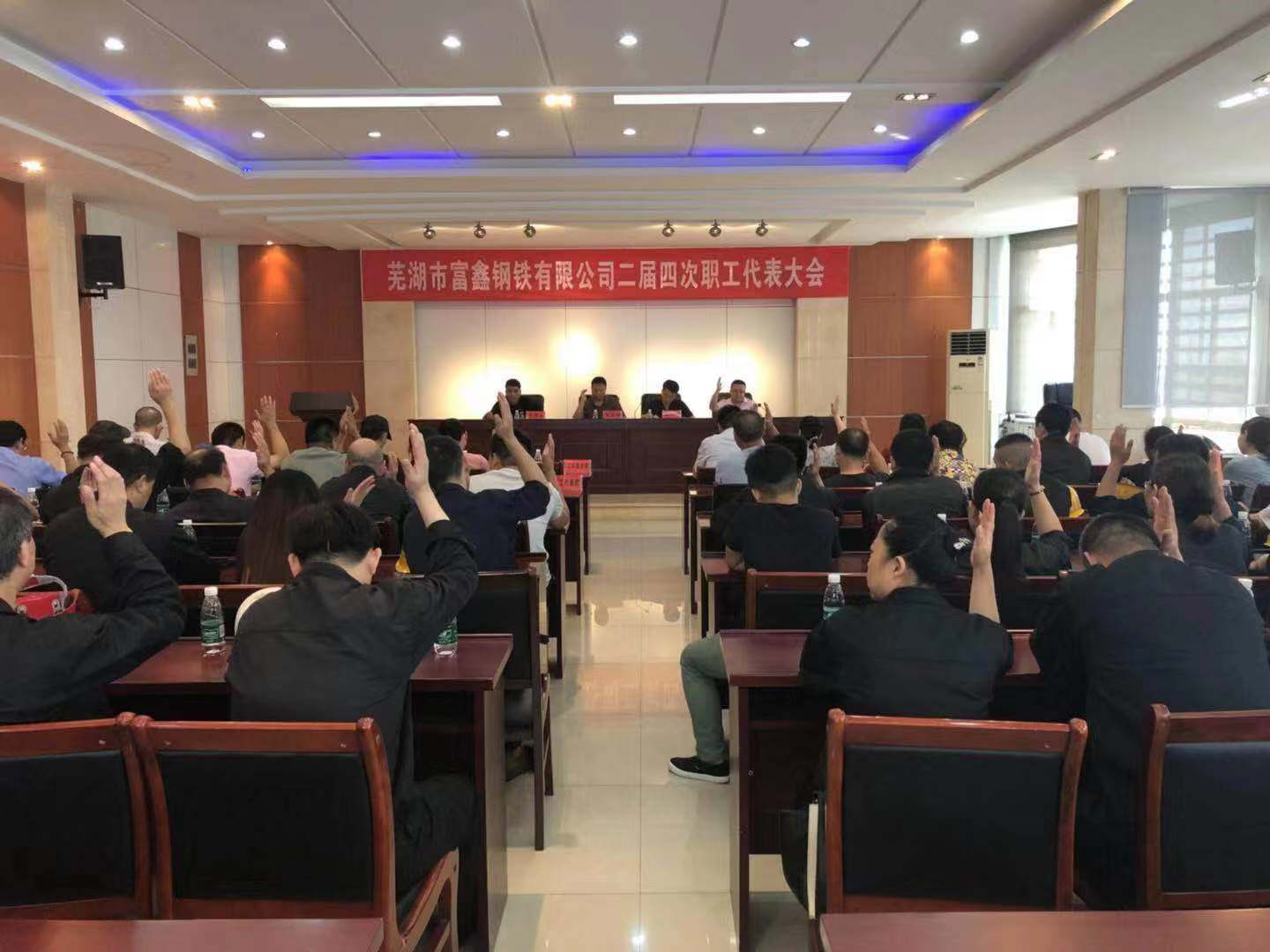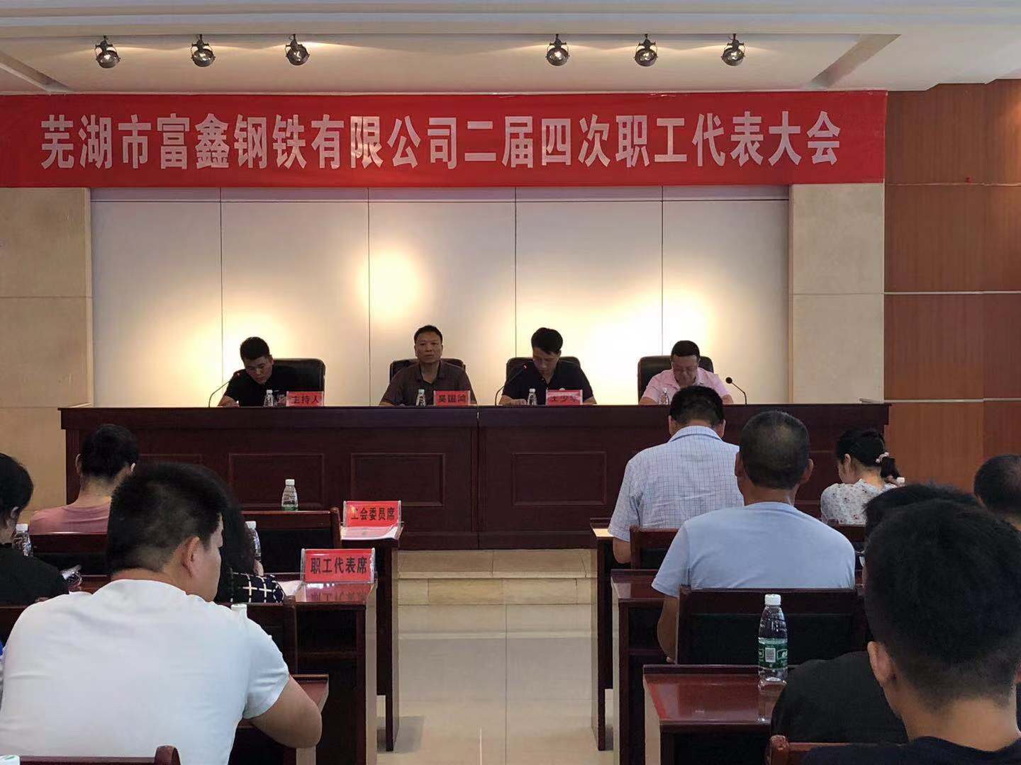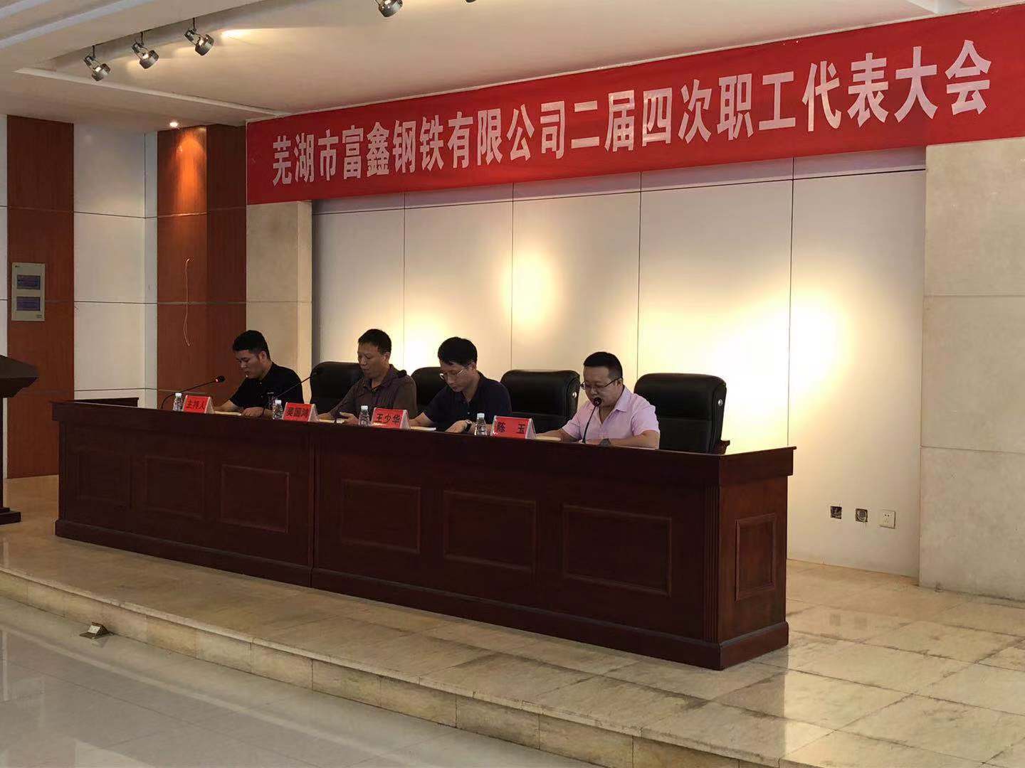 2019年8月6日上午9時(shí)蕪湖市富鑫鋼鐵有限公司第二屆第四次職工代表大會(huì)在雄壯的國(guó)歌聲中隆重開(kāi)幕!受公司黨委書(shū)記王文奇同志委托,陳玉同志代表公司黨委對(duì)大會(huì)致辭!會(huì)上全體工會(huì)委員、職工代表精神飽滿,積極審議。并認(rèn)真舉手表決,全票審議通過(guò)了公司2019版《員工手冊(cè)修訂草案》和工會(huì)主席王少華同志作的題為《有效提升工會(huì)服務(wù)意識(shí) 共譜和諧發(fā)展新篇章》工會(huì)工作報(bào)告。最后由公司領(lǐng)導(dǎo)吳國(guó)鴻同志致大會(huì)閉幕辭!此次大會(huì)回顧了2018年公司各部門(mén)全年的工作,并且號(hào)召全體員工在公司黨委的堅(jiān)強(qiáng)領(lǐng)導(dǎo)下,統(tǒng)一思想,堅(jiān)定信心,攻堅(jiān)克難,開(kāi)拓創(chuàng)新,全力以赴,為全面實(shí)現(xiàn)2019年公司生產(chǎn)發(fā)展目標(biāo)而努力奮斗!