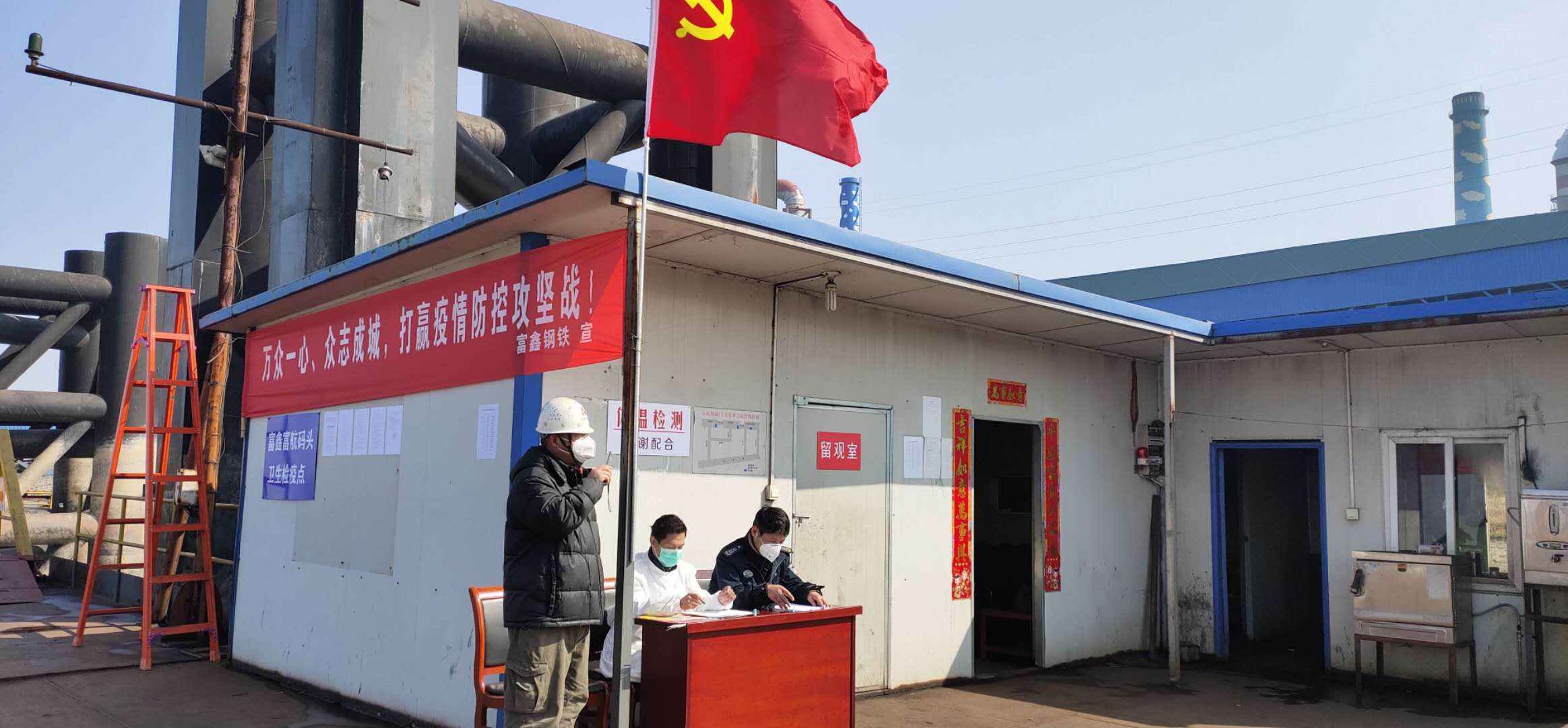 黨旗飄揚(yáng)在戰(zhàn)“疫”一線(xiàn)!【全面部署,嚴(yán)防死守,確保疫情防控有力有序】近日,為堅(jiān)決遏制新型冠狀病毒感染引起的肺炎疫情擴(kuò)散,蕪湖市富鑫鋼鐵有限公司對(duì)所屬碼頭加強(qiáng)管控,抽調(diào)公司各部門(mén)管理人員,迅速成立碼頭衛(wèi)生檢疫站點(diǎn)。對(duì)碼頭生產(chǎn)運(yùn)行進(jìn)行實(shí)時(shí)監(jiān)控。對(duì)進(jìn)出港船只人員進(jìn)行嚴(yán)格管控,嚴(yán)禁下船操作,凡是來(lái)自重點(diǎn)疫區(qū)船只一律不得靠港。對(duì)碼頭作業(yè)人員規(guī)定時(shí)間進(jìn)行體溫檢測(cè)。做到黨員干部靠前指揮,旗幟鮮明,宣傳標(biāo)語(yǔ)口號(hào)響亮!防控措施有力!各部門(mén)上下協(xié)調(diào)通順,全力打贏碼頭疫情防控阻擊戰(zhàn)!